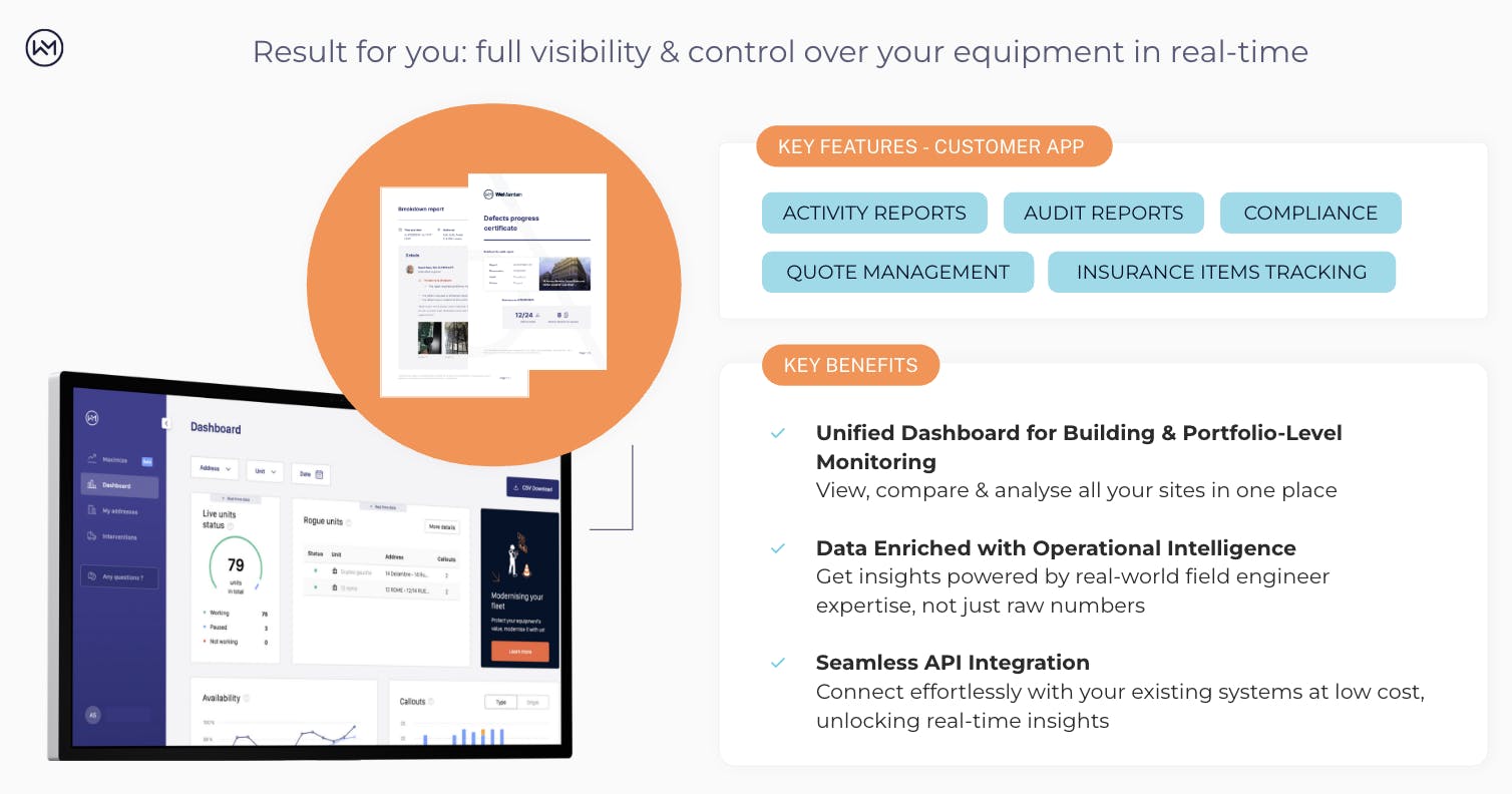 ⇒ One platform, all assets: Clients managing both lifts and escalators now benefit from unified data, reporting, and decision tools