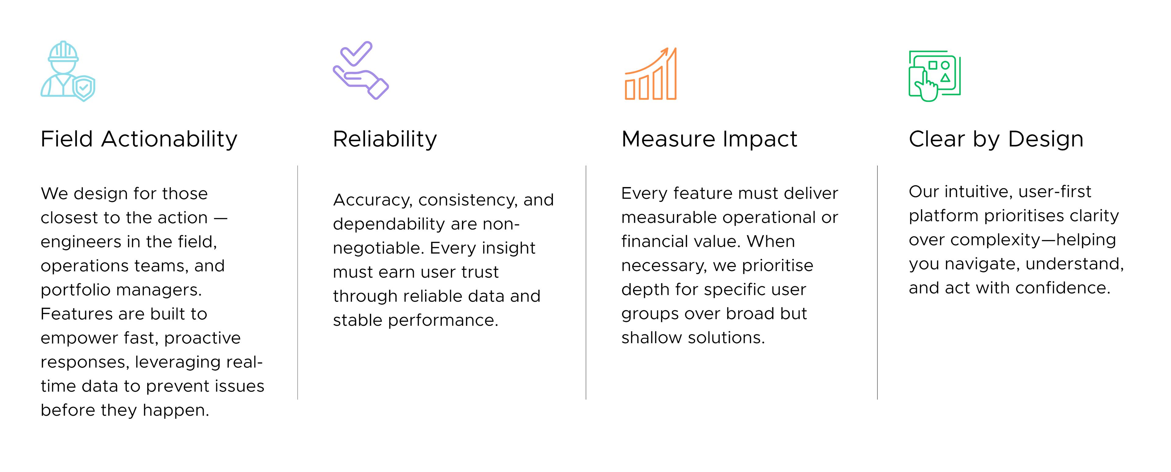 Our approach to product development is shaped by a set of core principles. These guide how we build, prioritise, and evolve our technology.