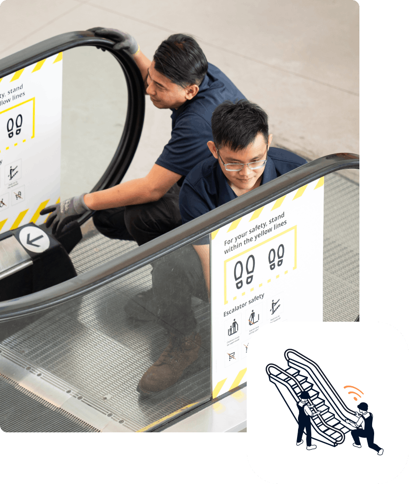 Experience the future of efficient and scalable escalator maintenance with WeMaintain. We specialise in assisting building owners and managers with their unique escalator needs—from remote monitoring and daily maintenance of diverse escalator portfolios to comprehensive modernisation projects. Our cutting-edge technology and expert team ensure a smooth, uninterrupted flow of people throughout your building, enhancing both safety and efficiency.