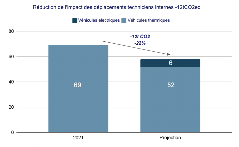 Notre consultant carbone a estimé le potentiel de réduction de ce projet à 12tCO2, en supposant que la taille de notre flotte reste la même l'année prochaine. Cet investissement devrait donc montrer son efficacité dans les prochaines années, c’est pourquoi nous aimerions disposer d’une flotte 100% électrique à plus long terme.