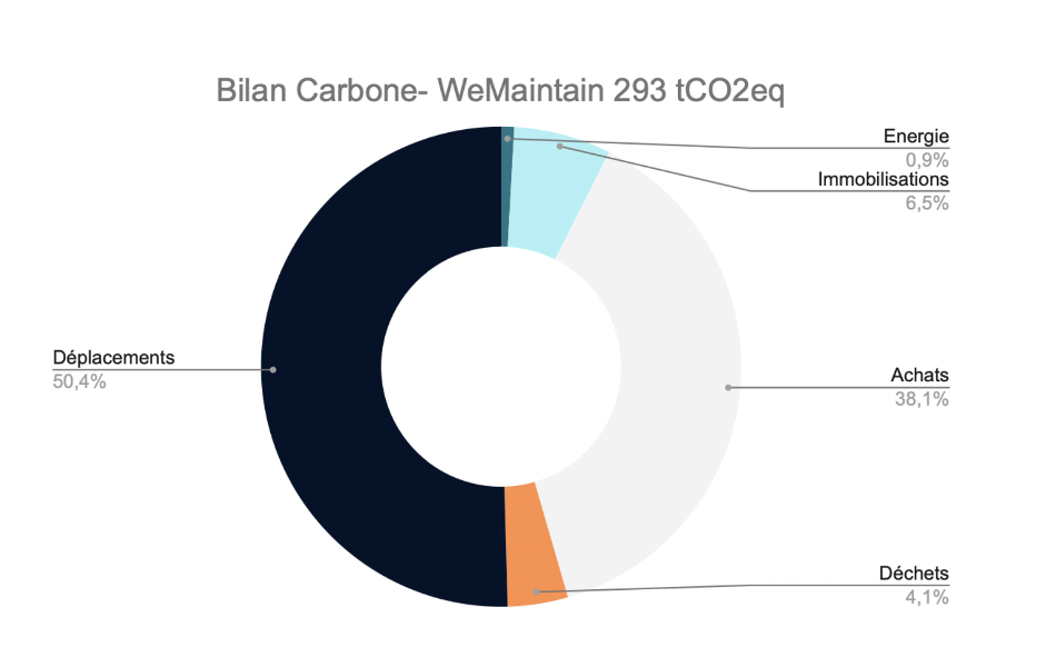 Nous pensions initialement que ces résultats nous aideraient à établir des objectifs de réduction quantifiés. Mais lors de l'élaboration de notre plan d'action, nous nous sommes rendu compte que la fiabilité des données collectées pouvait être améliorée car certaines émissions de la scope 3 sont difficiles à quantifier précisément. Cette empreinte carbone nous donne sans aucun doute une vue d'ensemble des domaines d'émissions les plus importants, mais affirmer avec précision que WeMaintain a émis 293 tCO2eq en 2021 semble un peu audacieux. La précision s'acquiert avec le temps : c'est une des leçons tirées de ce projet.