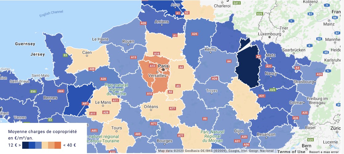 Nous observons, sans surprise, que Paris présente les charges de copropriété au m2 les plus élevées.