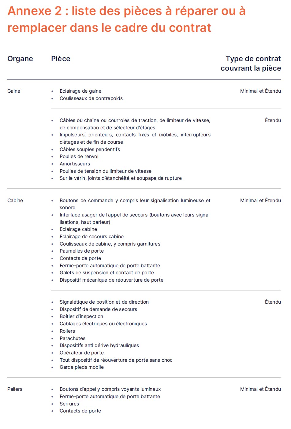 Il existe 2 types de contrats principaux chez tous les ascensoristes : minimal et étendu.