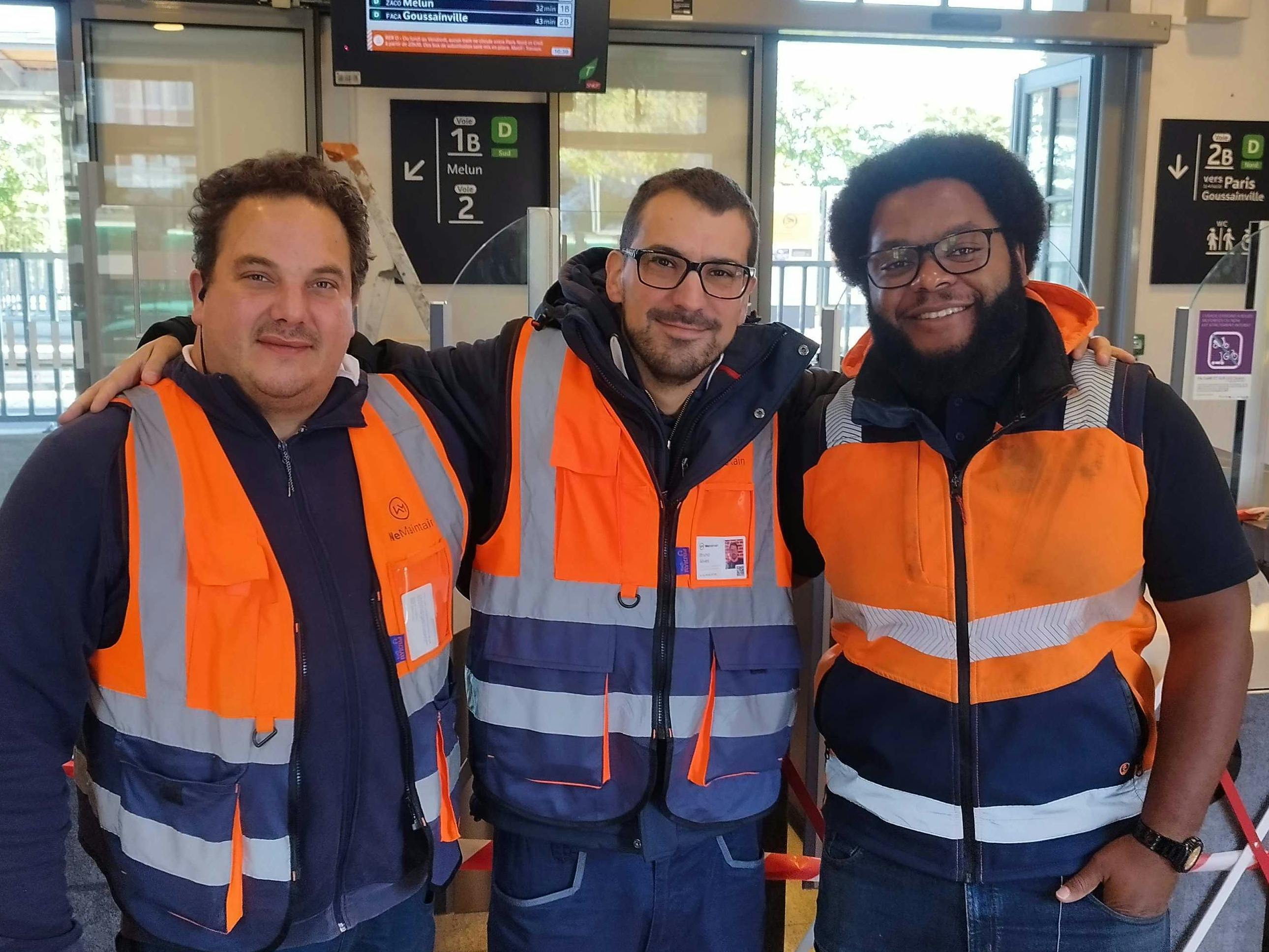 Sasha Vasta, Bruno Alves et Joshua Nino, trois de nos techniciens en portes automatiques.